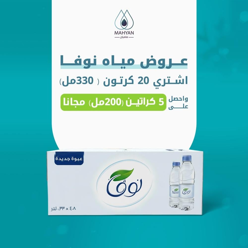 اشتري عرض مياه نوفا 330مل 20 كرتون + 5 كرتون 200 مل مجانا
